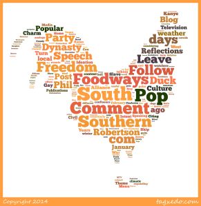 Writing posts for Pop South has been an enjoyable experience, and it’s also provided a means for connecting with the larger public about the ways in which the American South is represented in popular culture. This is especially important for folks like myself who work in academia, where our critics suggest that we exist in a bubble and are out of touch with the “real world.”