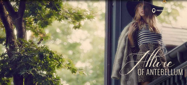But this fall, Preserve proudly brings you the “Allure of Antebellum,” a fashion collection inspired by the “southern charm” and the “authenticity” of the “Southern belle.” These were the women, the website observes, who possessed “inherent social distinction [that] set the standards for style and appearance” and “epitomized Southern hospitality with a cultivation of beauty and grace, but even more with a captivating and magnetic sensibility.” Want a piece of that? Well, then, “embrace the season and the magic below the Mason-Dixon with styles as theatric as a Dixie drawl.”